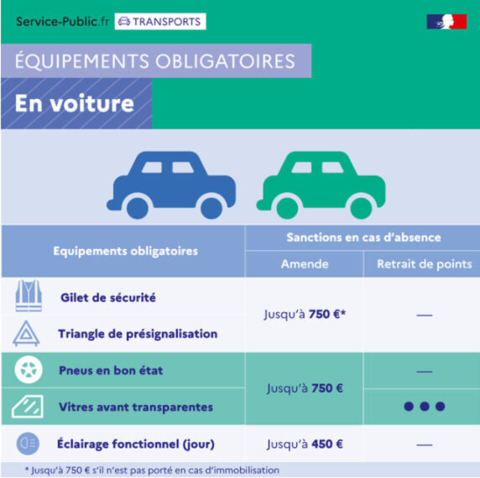 The law outlines fines for not having certain items though it can depend on how strict the police or gendarmes decide to be on the day if you are stopped
