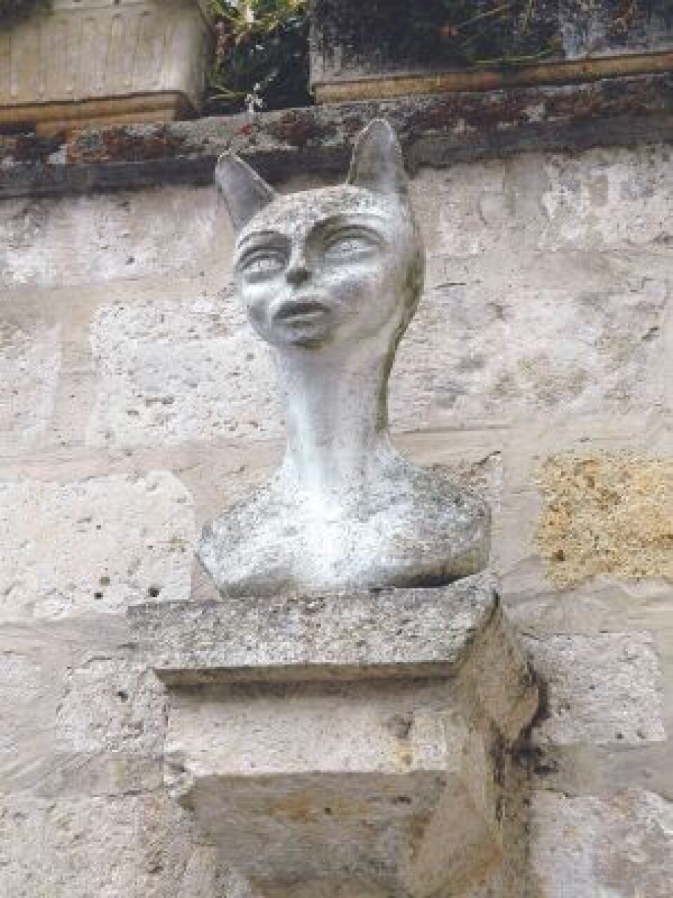 Photo: Cat sculpture in La Romieu; Credit: Marion Kaplan / Alamy