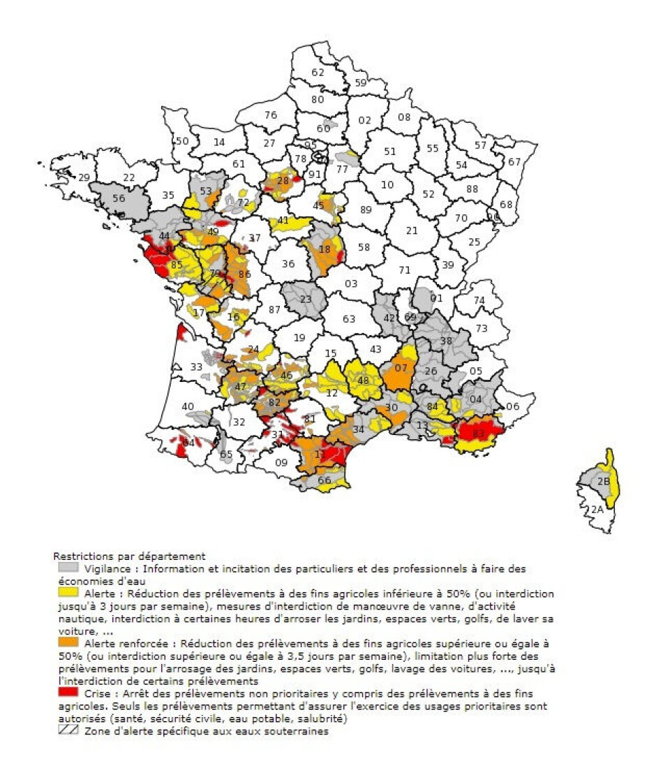 Drought alerts are in place for 38 departments in France despite a rainy summer in many areas, after a series of dry winters mean the water table has not been replenished.