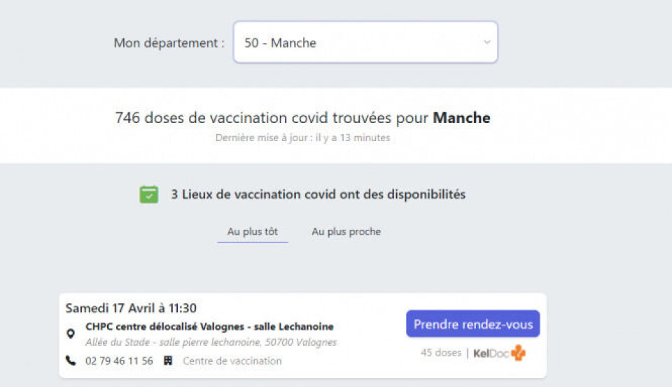 This situation is likely to change as more doses arrive in France. It could be worth checking VMD once a day to see if an appointment becomes available in your department. It is a simple process and only takes a few seconds.