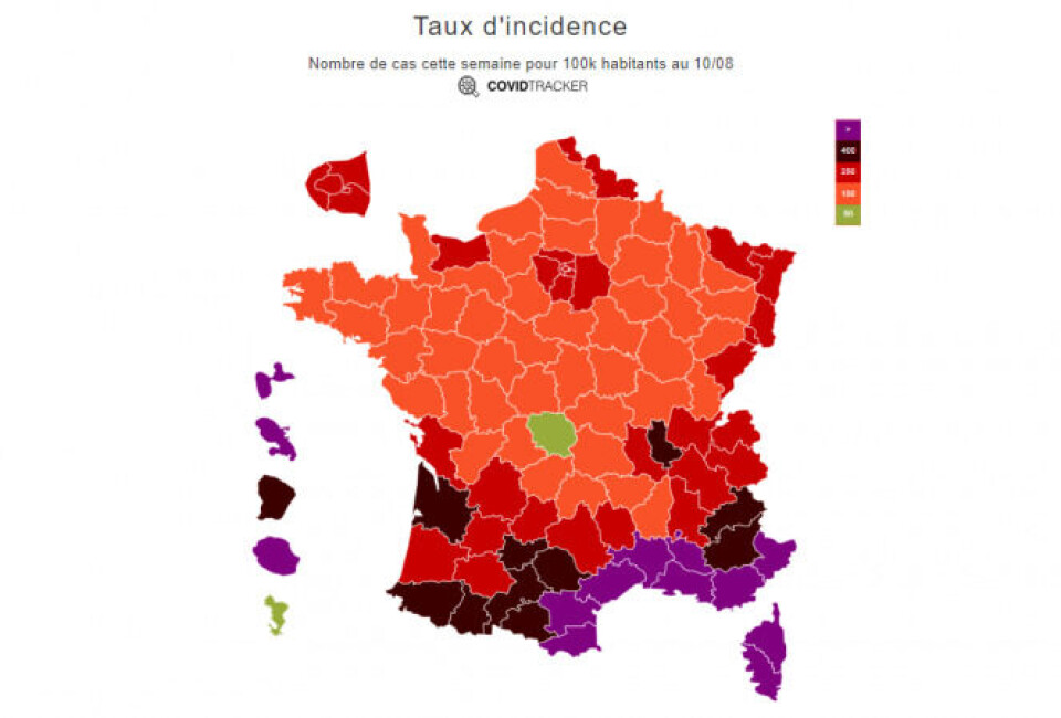 It is mainly departments in the south of France that will be affected by this, as almost all of them have an incidence rate of over 200.