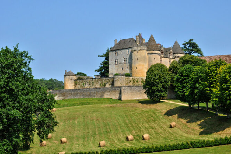This château, built in the 12th century, sits on top of a limestone cliff and looks over Dordogne, especially its north bank and town. It is one of the most famous and well-preserved châteaus in the region.