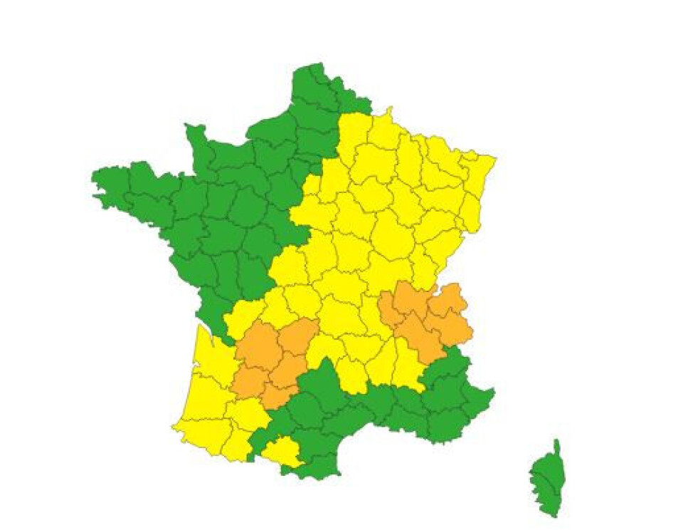 In addition, ten departments are facing warnings for a canicule – heatwave – with five of these also being at tier-three orange level.