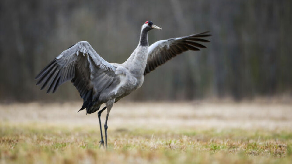 The common crane travels as far as 2,500 km during migration, from northern Europe to north Africa typically flying in a Y or V shape.