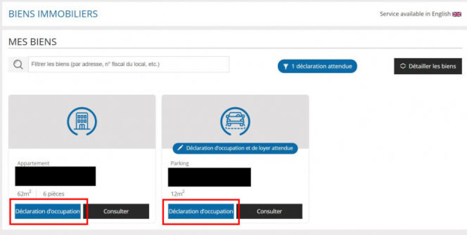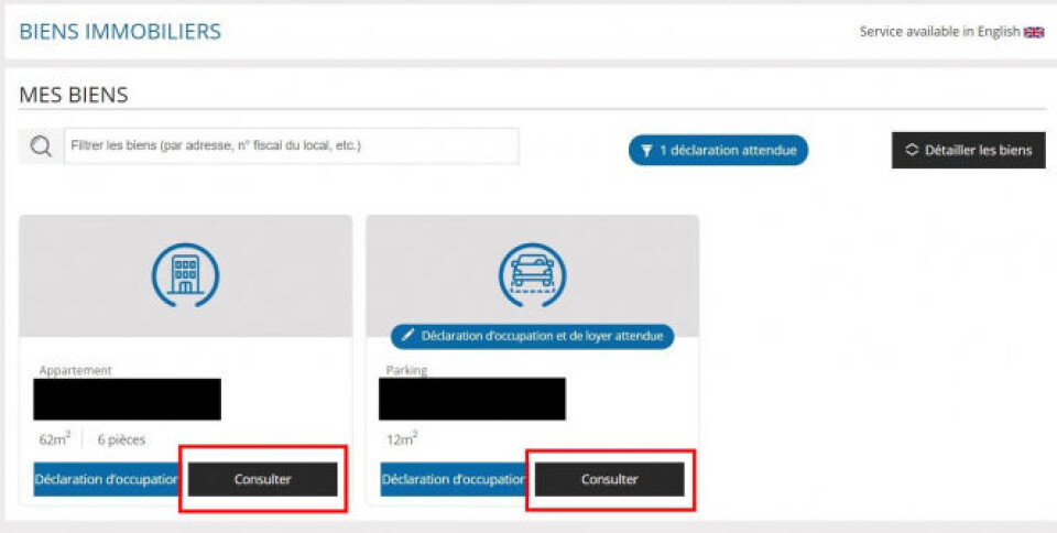 Step four: This page will show a list of the properties you own known to the tax authorities. For most people, this will only be one property. Click the 'consulter' button. This allows you to view what information the tax authorities have on your property.