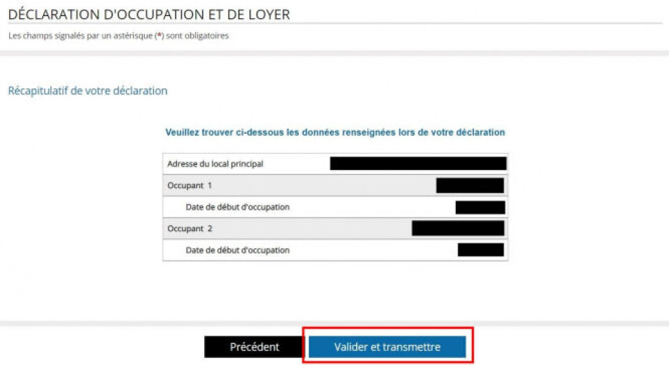 Step five: Click 'déclaration d'occupation' to start the declaration.