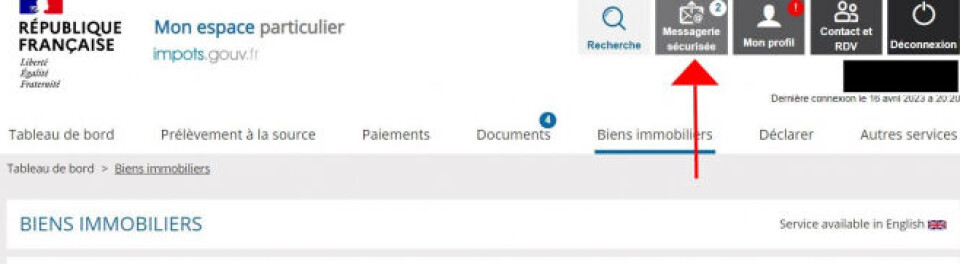 Step ten: If you have a question, or need to flag that your property details are inaccurate, you can send it to the tax authorities using the 'messagerie sécurisée' at the top of the page.