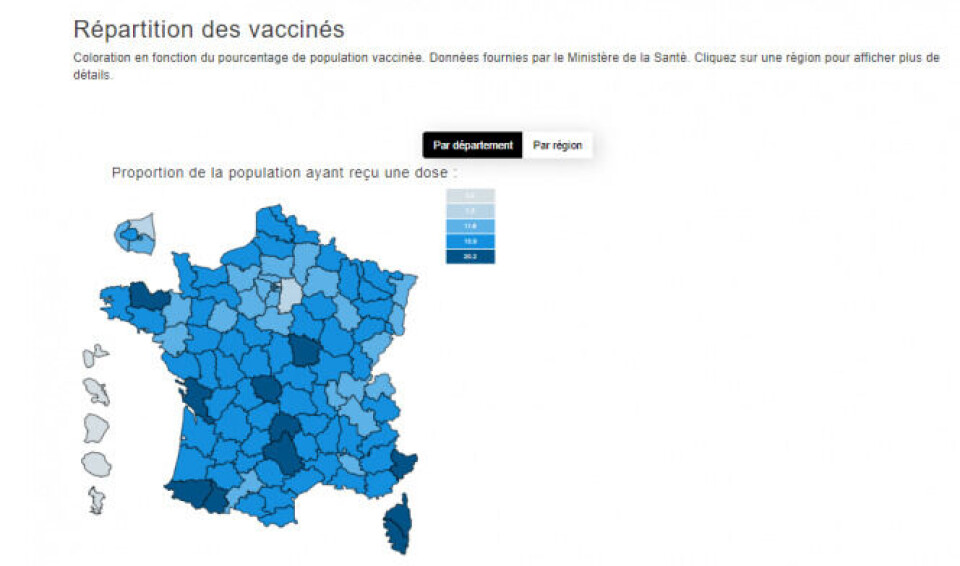 Seine-Saint-Denis (11.29%) and Seine –et-Marne (11.35%) have vaccinated the fewest number of people proportional to the population.