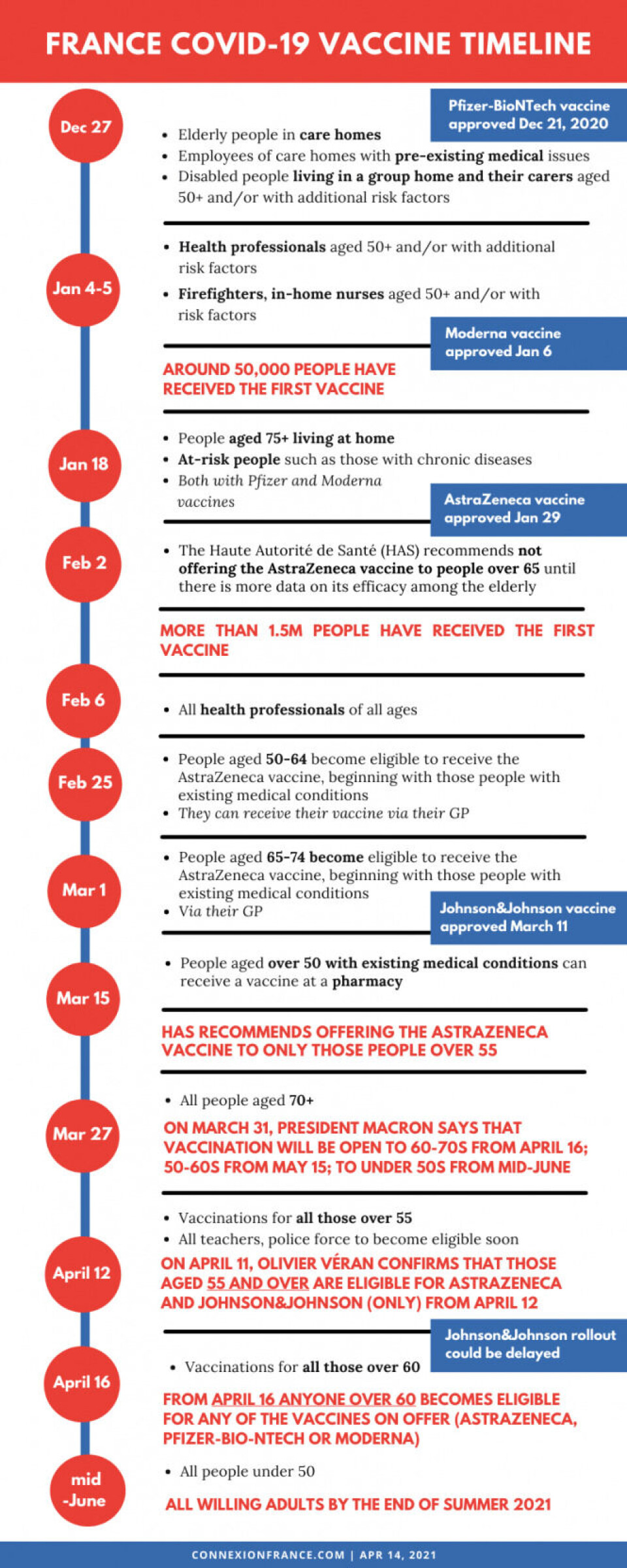 France opened up the vaccination campaign to all people, regardless of health, aged 55 to 59 on Monday (April 12), but only using the AstraZeneca or Johnson & Johnson vaccines.