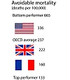 "Avoidable hospital admissions" relates to situations where a patient was treated in hospital where their condition could have been dealt with in primary care (such as a GP surgery). Inexplicably, the OECD had only very old (2014–15) data from France on this for its latest report.