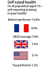 The prevalence of diabetes as an indicator of chronic disease is also much lower than that of most other countries. The proportion of people who are unhappy with their health is higher in France than in most countries.