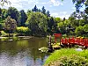 The design of a Japanese garden is always rich in symbolism and the Parc Oriental uses water as a metaphor to describe the story of man’s journey through life: from the small lively stream of childhood to the large, placid lake of old age, complete with its famous reconstruction of Alexandre Marcel’s original red bridge, leading to the Islands of Paradise, representing the after-life.
