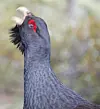 The vibrating head of a close cousin of the Black grouse, the Capercaillie (Grand tetra), is shown in the photo above, as he paraded up and down his ground, belching and bellowing his strange calls during several hours. There were two other males doing the same, a few dozen metres away in the forest, but they never came together.