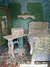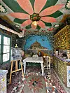 It starts from a little alley, paved with tiny bits of plates. On the left sits the house itself, two rooms decorated with art mosaics from floor to walls and ceilings (see images).