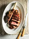 To carve, run a sharp knife along the concave side of the bone to separate the meat from the bone. Slice the meat into strips across the grain and transfer both the meat and the bone to a serving platter. Garnish the steak with fleur de sel and serve with the pan sauce.