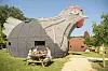 DefiPlanet, a village de vacances in Dienné, has castles and treehouses, yurts, chalets, gypsy caravans, log huts and cabins shaped as giant rabbits or chickens.