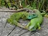 A much brighter coloured lizard which can be twice the size when the tail is included is the Western green lizard (Lézard vert), a strikingly coloured lizard, with the males often showing a blue throat, as can be seen in the photo below (with a common lizard joining in the fun).