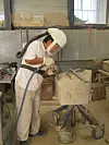 These days, machines help cut stone, but stone cutters finish themStella Cheng