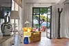 Set around a shaded patio planted with lush vegetation and a serene swimming pool, the villa is a celebration of Provençal architecture featuring natural materials such as stone, terra-cotta, and wood. Large bay windows flood the space with light, blurring the boundaries between indoor and outdoor living.