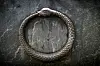 The image of the snake biting its own tail, creating a slithery circle, is linked to the Ouroboros. This symbol, which can sometimes be presented as a dragon, stems from various mythological iconographies.