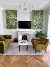 Anita Le Sech's living room features two paintings that slide apart to reveal a TVAnita Le Sech