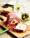 9. When it comes to serving, just run a knife around the edge of the loaf to release it from the sides of the pan and then turn it out onto a board. You’ll now see what I mean about leaving the small gap between the prosciutto so that you can slice the softer mixture below it without dragging the prosciutto with your knife.