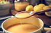 Transfer the mixture back into the saucepan and cook over medium heat, stirring continuously, until thickened so that a finger run over the back of the spoon leaves a mark. Strain the mixture through a sieve to remove the zest and any scrambled pieces. Add butter to the strained mixture and blend well using a blender or whisk.
