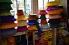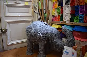 Finally, she covers the paper-mâché with fringed, coloured paper and any necessary details, a process which takes around four hours.
