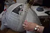 Ms Farah blows up a balloon. Then, she covers it with pages of glued newspaper and lets it dry.