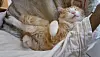 Rémi, the ginger tom laying indoors, photo credit: Dominique Valdès