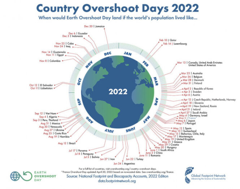 Every year, it calculates the Overshoot Day for the world – which was July 29 in 2021 (2022 has not yet been officially calculated) – and also calculates the figure for individual countries.