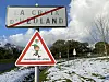 In the small village of Heuland, in Calvados, home to around 150 people, signs usually warning of speed limits are now accompanied by those warning of elves crossing and sleighs flying overhead.
