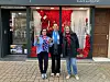 A shop displaying a poppy dress in the townTansy and Mike Forster