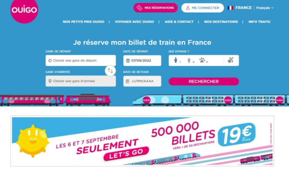 The low-cost tickets are available until the end of today (September 7) on the Ouigo website. Credit: Screenshot / Ouigo.com