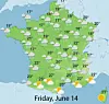 However, the cold air will be dry despite last week’s forecast of rain from Wednesday (June 12). The French state weather service Météo France now forecasts that the wet spell will begin on Friday (June 14).