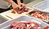 It applies to raw meat purchased to be cooked on the premises, not meat purchased that is already prepared or cooked.