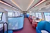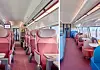 A red-blue colour scheme is in place for seats, with red being used for first class and blue standard class seats.