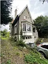 Its elevated position and large bay windows mean there should be potential for a light, airy living room, although at the moment it appears that overgrown trees take much of the light.