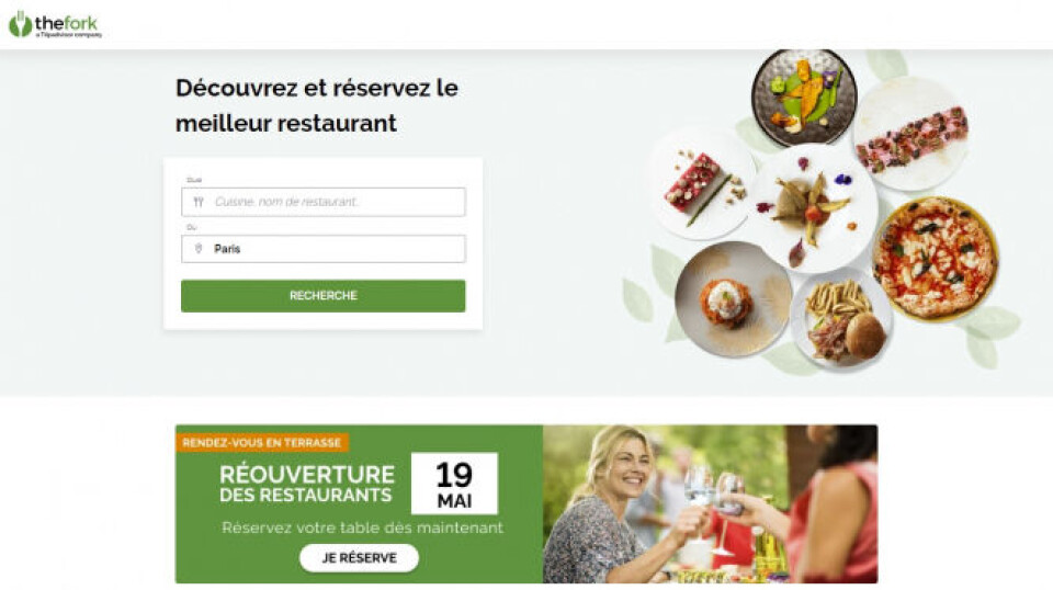 Online bookings for restaurants in France are soaring already ahead of terraces reopening on May 19, with reservations on popular website The Fork up tenfold and site visitors up 80% in the past week.