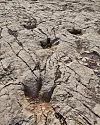 The footprints were left by the dinosaurs in the mud of a marsh, then submerged and unsubmerged in water, with another layer of mud covering them very quickly.