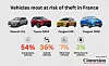 Car theft figures in France show popular models such as the Renault Clio and Peugeot 3008 among the vehicles most frequently targeted.