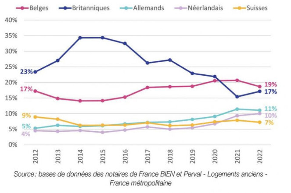 In particular, the notaire information showed the percentage of property purchases by the five highest non-French nationalities – Britons, Belgians, Germans, Dutch, and Swiss.
