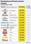 The French government estimates that diesel prices reached €2.336 per litre on average on Tuesday (April 7), an all-time high since records began in 1985.