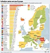 The map below shows inflation rates across Europe (the EU as well as European Economic Area (EEA) members Norway and Iceland, but does not show microstate Liechtenstein) as well as Switzerland, which is neither in the EU nor EEA but the single market.
