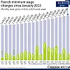 France’s minimum wage remains on the higher side for Europe, but is still significantly less than in several other countries.
