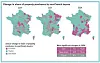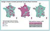 The images below shows changes at a departmental level in 2019, 2021, and 2024. Grey shows the share of buyers dropping compared to the previous calendar year, and purple if the number has increased.