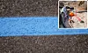 Though it may appear to be either decorative or like a new kind of road marking for drivers it is neither: The blue line simply marks the presence of fibre optic cables running beneath the tarmac.